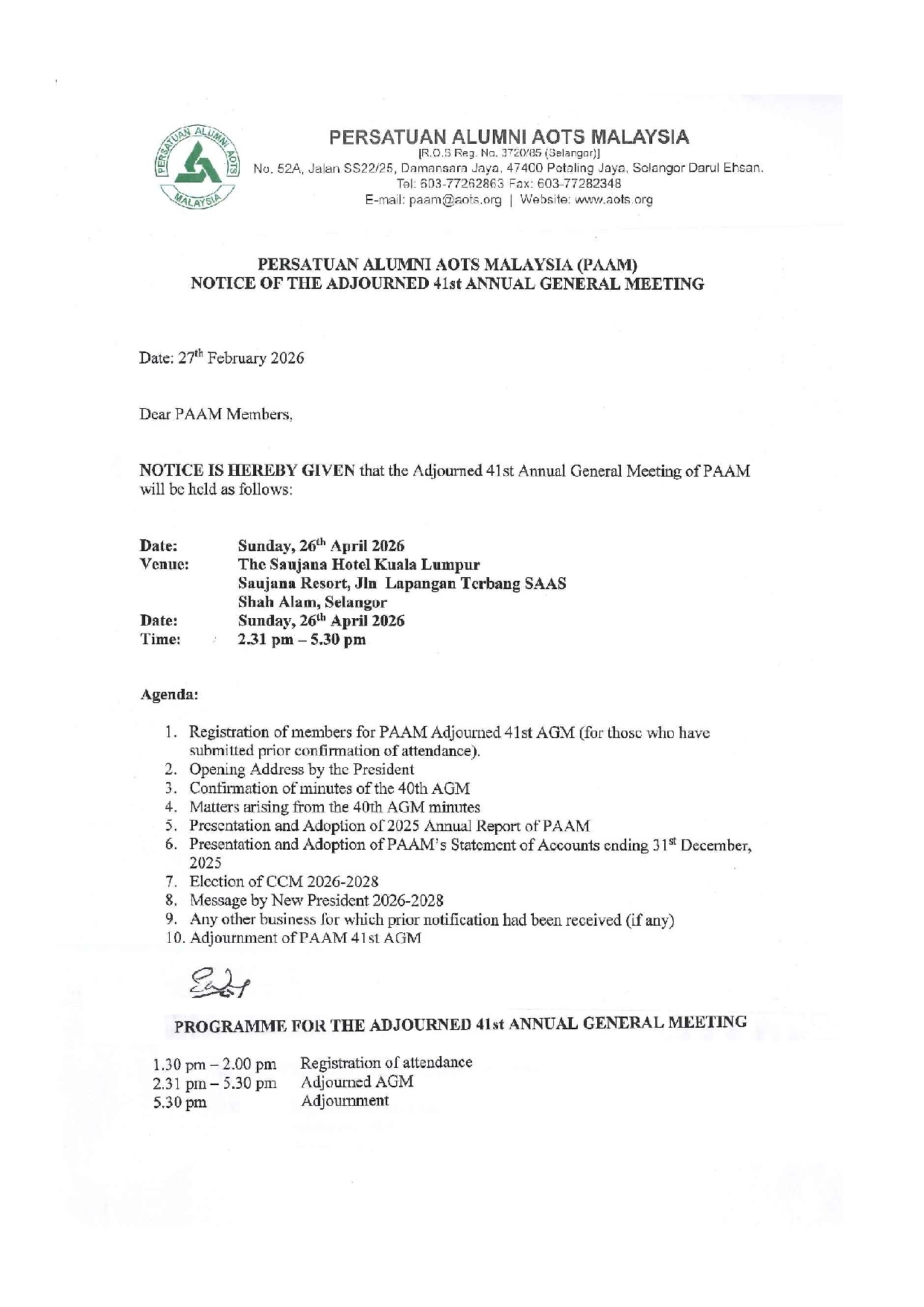 by admin / March 10, 2026 / Comments Off on Adjourned 41ST Annual Grand Meeting of PAAM